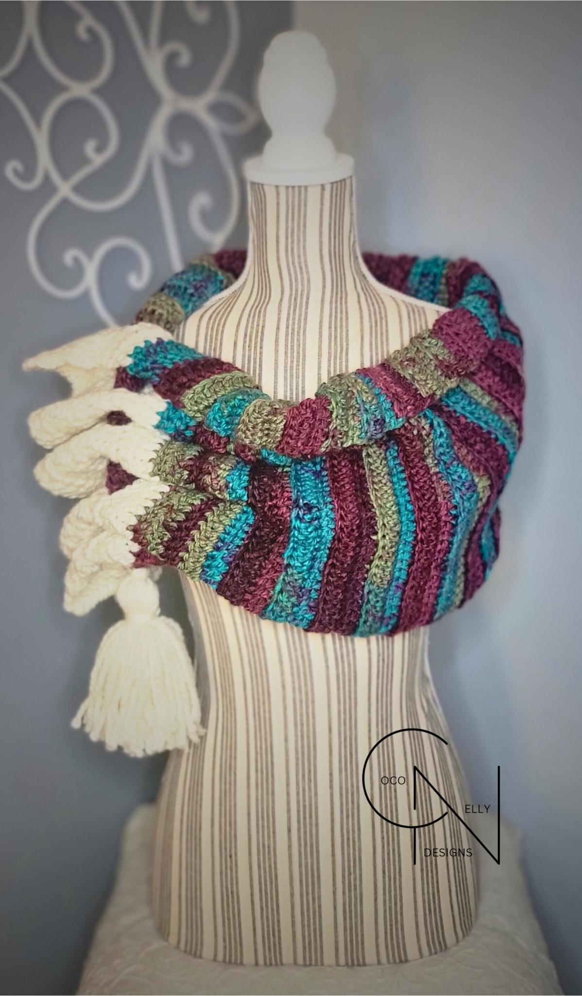 Experience the luxurious charm of our handmade, one-of-a-kind Desert Sands Keyhole Scarf. With its unique color dye and warm, cozy texture, you can weather any season in style. Our crochet detailing and tassel offer a delicate finish, while the colors of the desert bring life to this timeless piece. Wrap yourself in the snug embrace of the Desert Sands Keyhole Scarf.
