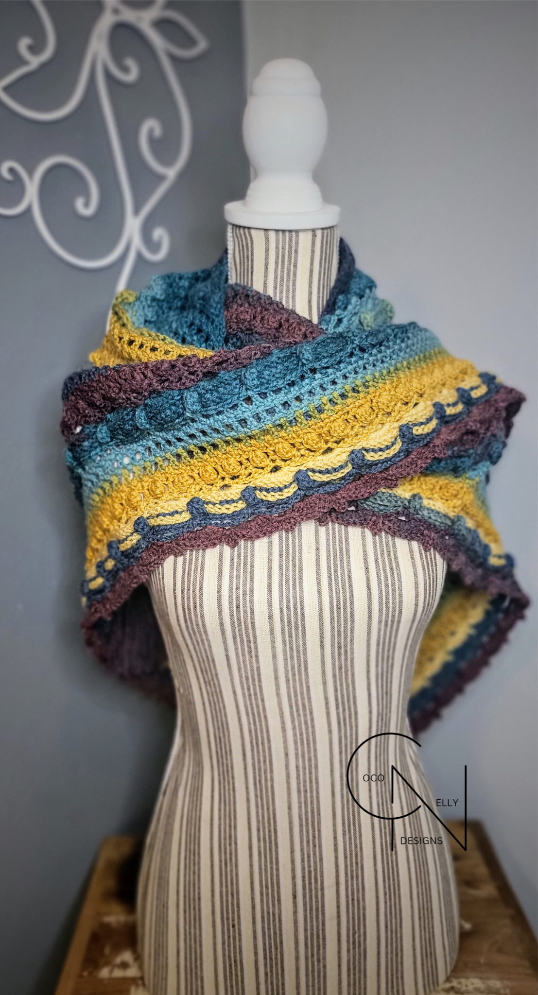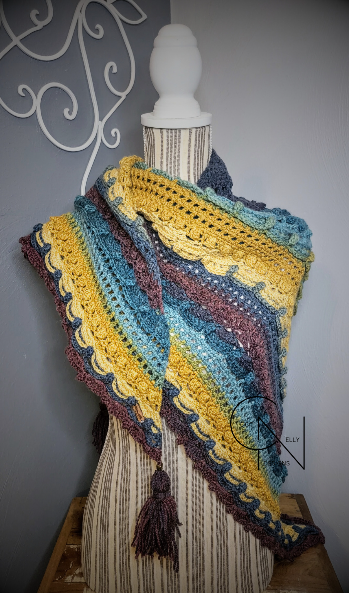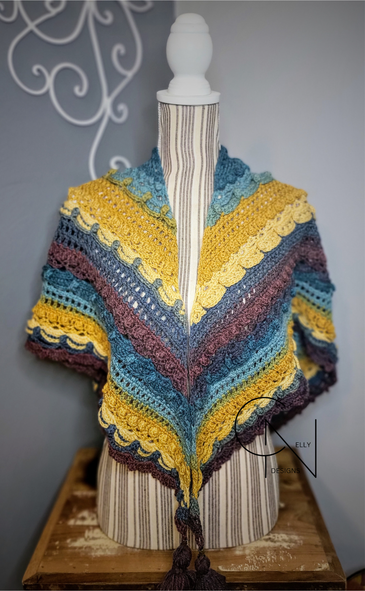 This Greecian Elegance Shawl is a one-of-kind, hand-crafted winter wrap designed for warmth and beauty. Crafted with thickly-crocheted acrylic yarn in beautiful hues of blues, maroons, purples, gold, yellow, and rust and soft tassels embellished with elephant beads, this shawl is sure to keep you cozy and in style. Unique and luxurious, it's the perfect must-have for any winter wardrobe.