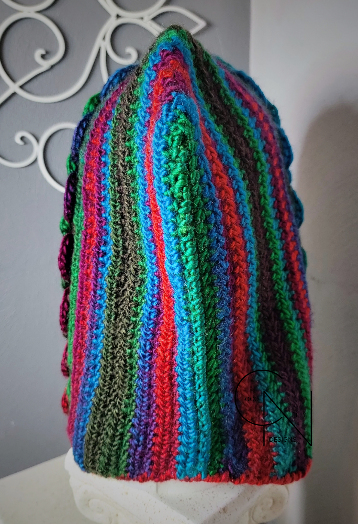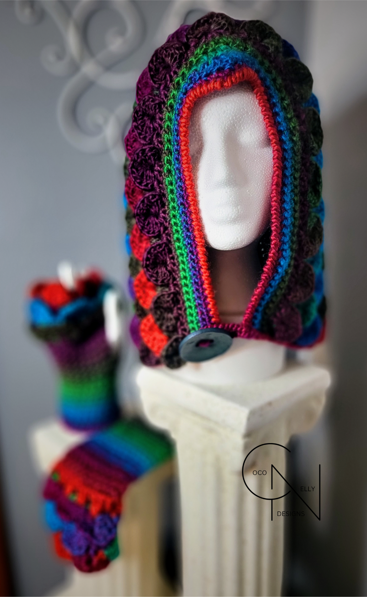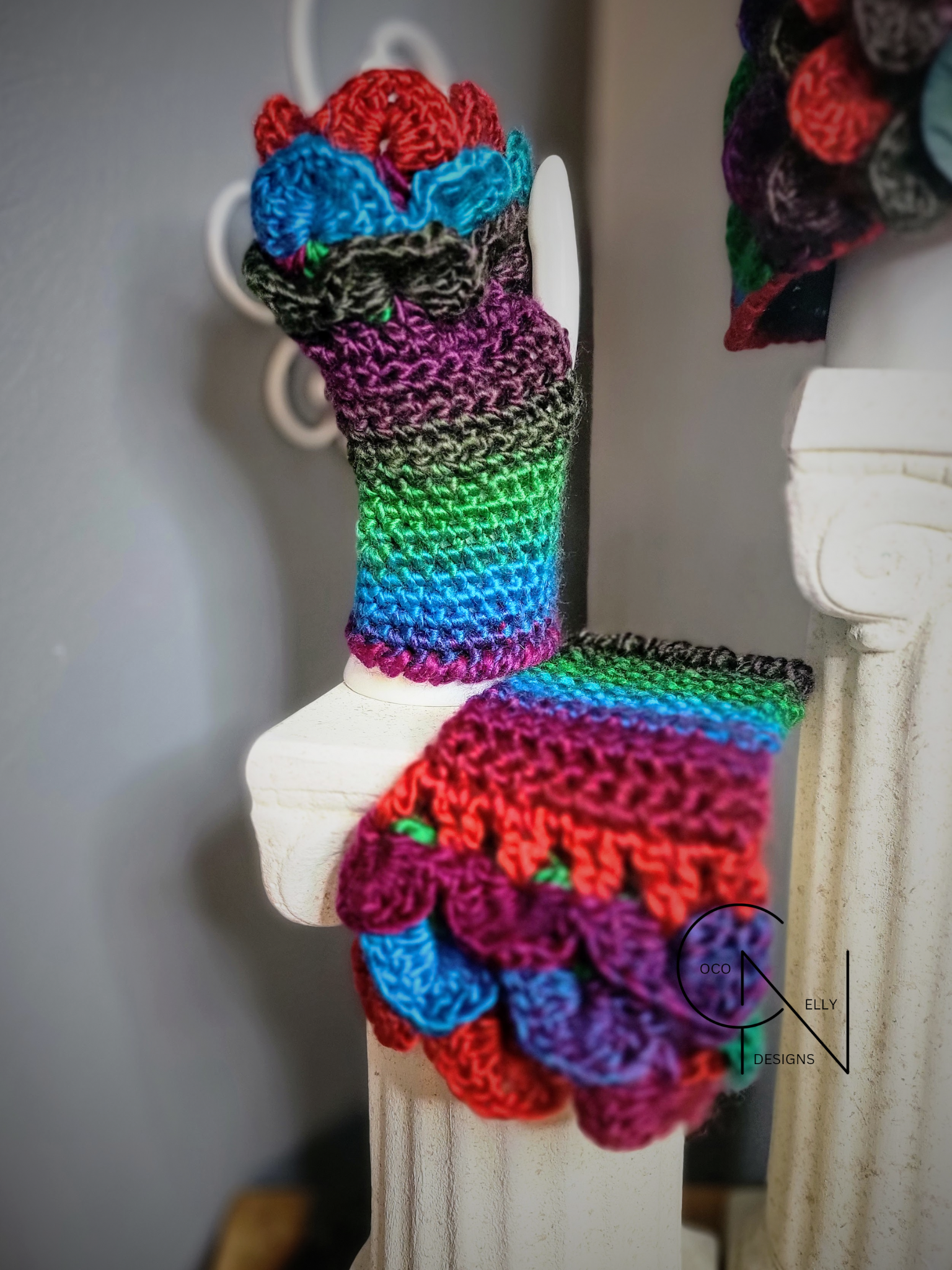 Our Rainbow Hat Set is a luxurious winter set made from high quality materials. It features a hand-made crocheted hat and fingerless gloves, both in eye-catching rainbow colors. The thick, warm, and soft material provides the perfect balance of comfort and protection from the cold. Plus, each piece is unique - no two sets are alike! Keep warm in style this winter with our one-of-a-kind hat and glove set.