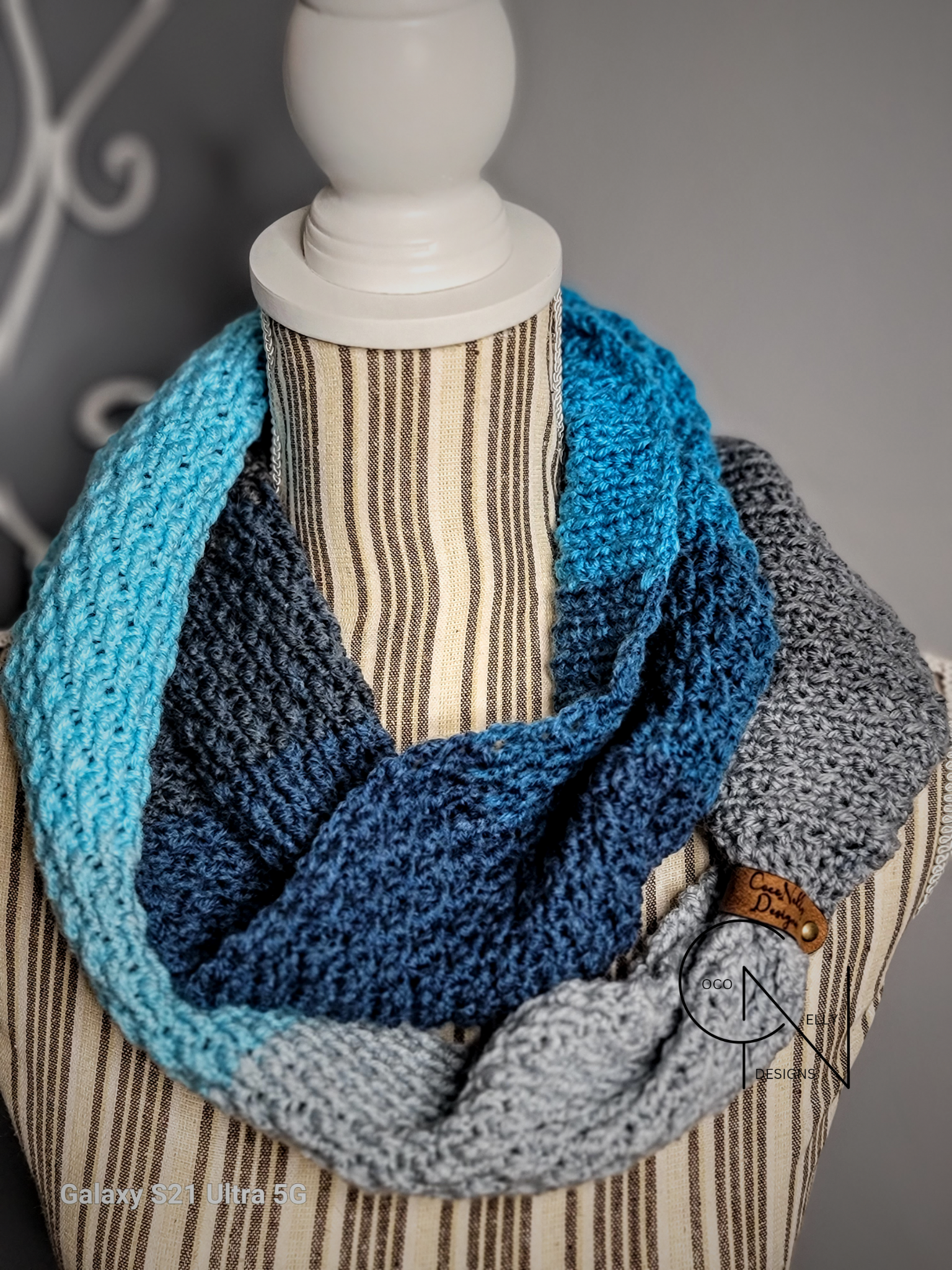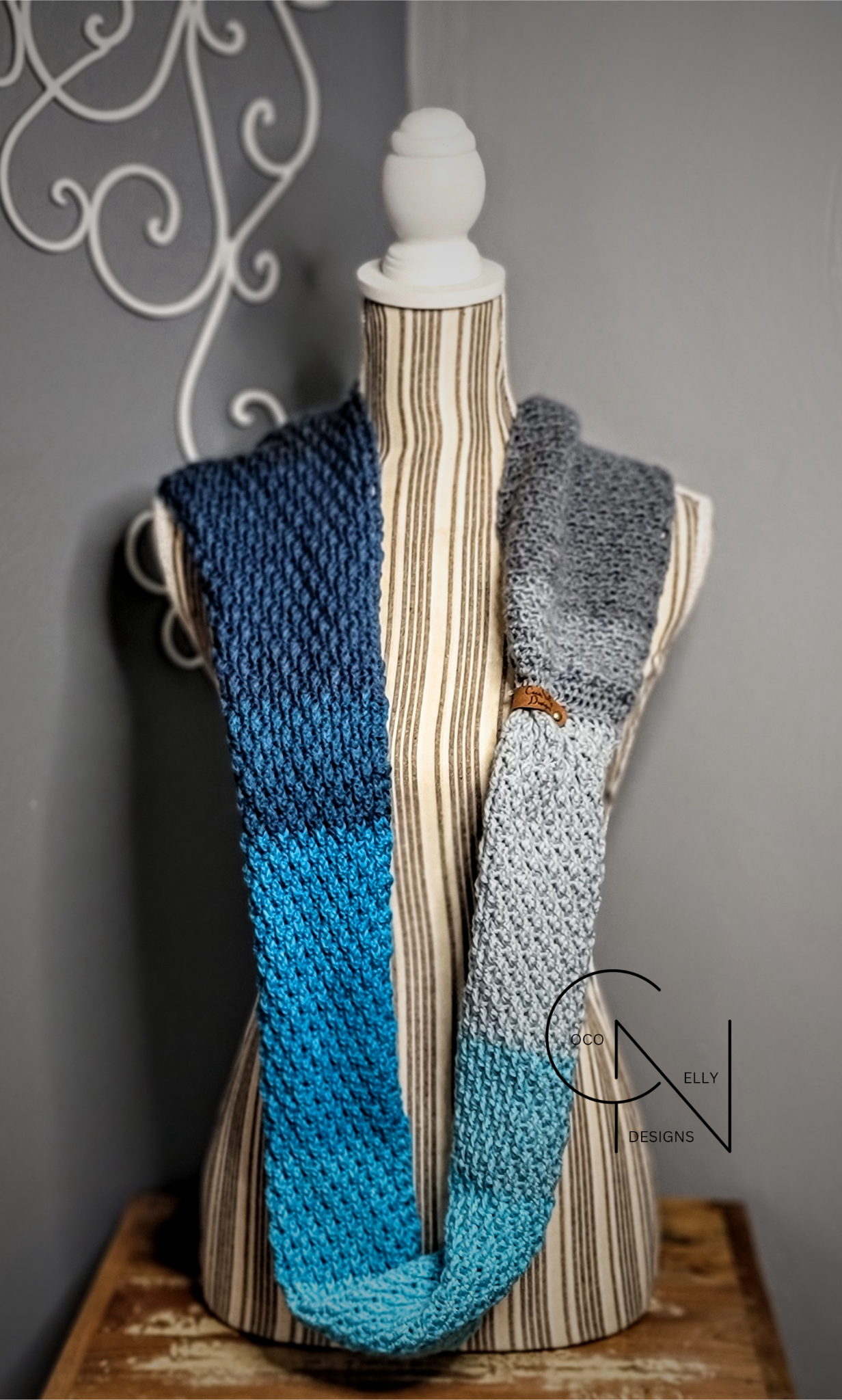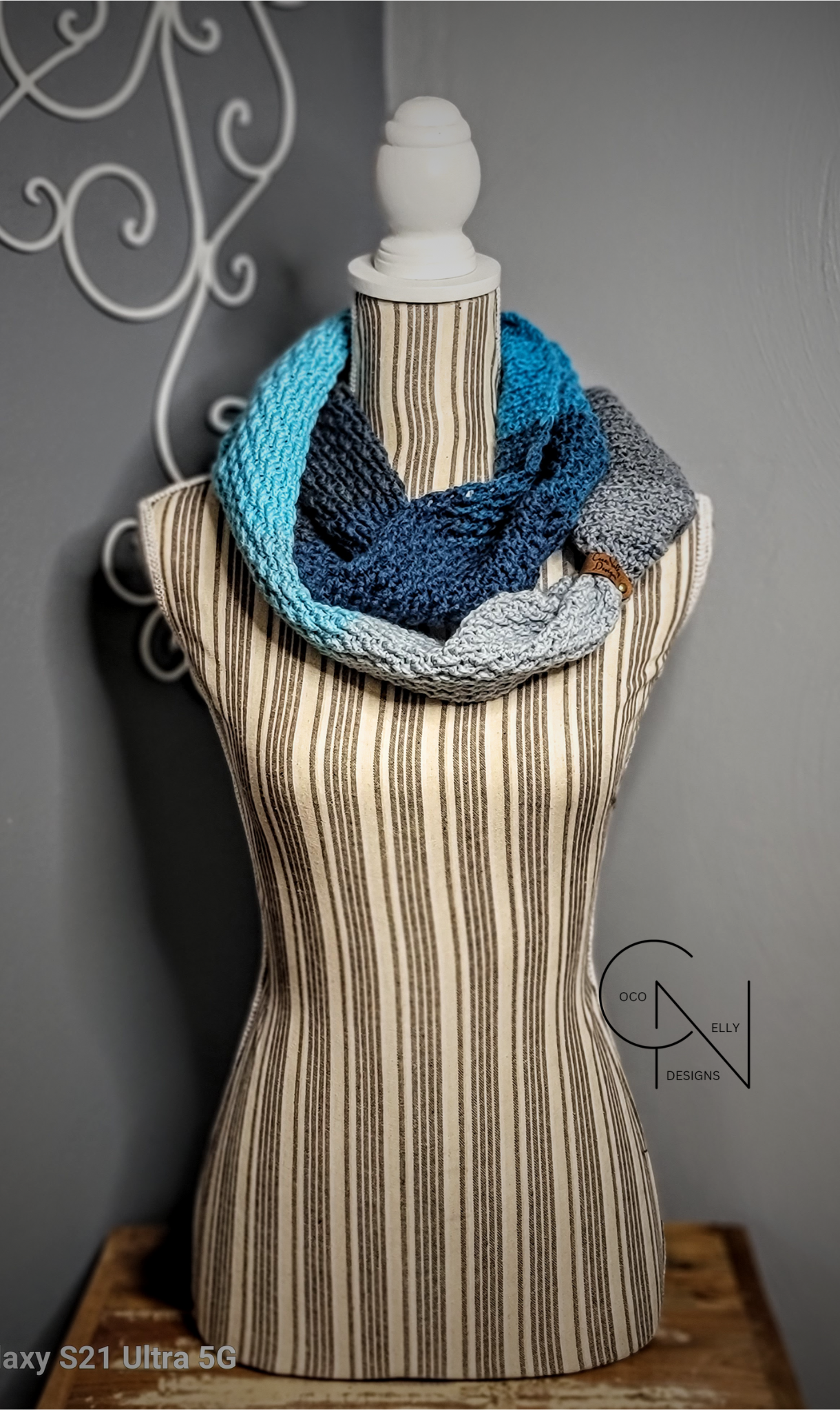 Our CALLA Ocean Mobius Scarf is the perfect signature piece for cold winter days. Hand crocheted from soft, multi-colored fabrics including turquoise, blues and greys, this scarf is sure to keep you warm and look beautiful. With its deep colors and unique Mobius shape, this scarf is the perfect combination of style and comfort.